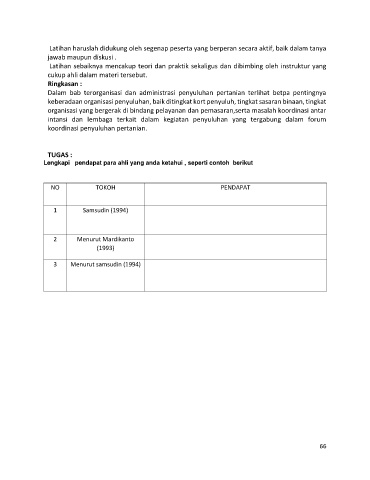 Latihan haruslah didukung oleh segenap peserta yang berperan secara aktif, baik dalam tanya