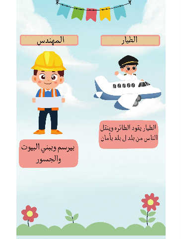 اﻟﻤﻬﻨﺪس اﻟﻄﻴﺎر اﻟﻄﻴﺎر ﻳﻘﻮد اﻟﻄﺎﺋﺮه وﻳﻨﻘﻞ اﻟﻨﺎس ﻣﻦ ﺑﻠﺪ ل ﺑﻠﺪ ﺑﺄﻣﺎن ﺑﻴﺮﺳﻢ وﻳﺒﻨﻲ اﻟﺒﻴﻮت واﻟﺠﺴﻮر