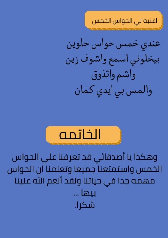 ‫الخمس واستمتعنا جميعا وتعلمنا ان الحواس‬