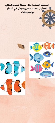 السمك الصغير :مثل سمكة نيمو والبطلي الصغير :سمك صغير يعيش في البحار والمحيطات