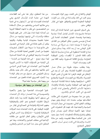•دور الجامعات من وجهة نظر سياسية: المصريـة ،بالشـ اركة مـع المؤسسـات التربويـة والمجتمـع