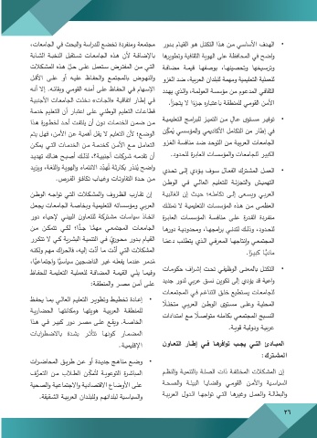 ‫	•إعـادة تخطيـط وتطويـر التعليـم العالـي بمـا يحفـظ‬               ‫المحليـة وعلـى مسـتوى الوطـن العربـي متخلـ ًا‬