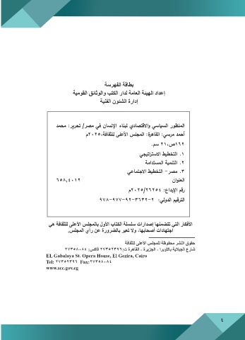 المنظور السياسي والاقتصادي لبناء الإنسان في مصر /تحرير :محمد