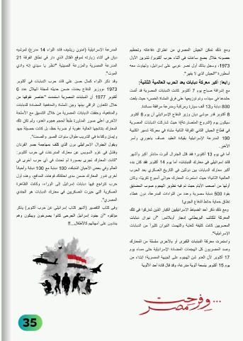 ‫حرب تتراجع فيها دبابات إسرائيل إلى الوراء‪ ،‬وكانت الظاهرة‬           ‫قائد إسرائيلي في معارك الدبابات‪ ،‬أما يوم ‪ 14‬أكتوبر فقد كان بدء‬