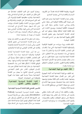 والسياسـي المسـئول النافـع؛ مـا يجعـل مـن التنشـئة ونجاحهـا .فعندمـا يكتسـب الفـرد ثقافـة مجتمعـه وُيدمجهـا