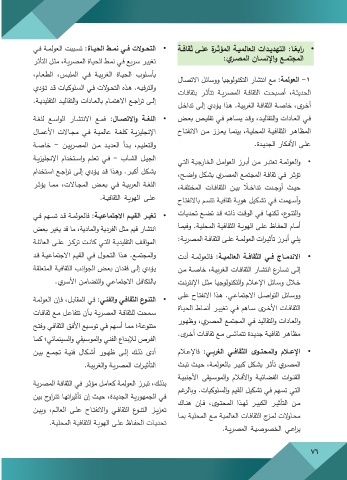 •التنـوع الثقافـي والفنـي :فـي المقابـل ،فـإن العولمـة والعـادات والتقاليـد فـي المجتمـع المصـري ،وظهـور