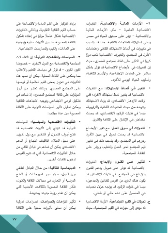 المؤثـ ارت علـى ثقافـة المجتمـع المصـري ،إذ تسـاهم فـي الاقتصاديـة قـد يتغيـر نمـط اسـتهلاك الأفـ ارد؛ ففـي