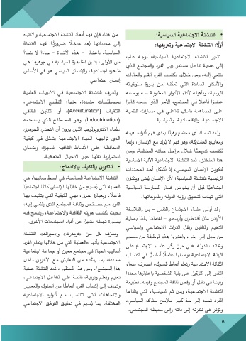 بصـورة تجعلـه متميـًاز عـن أفـ ارد المجتمعـات الأخـرى. التعليـم والتلقيـن ونقـل التـ ارث الاجتماعـي والسياسـي