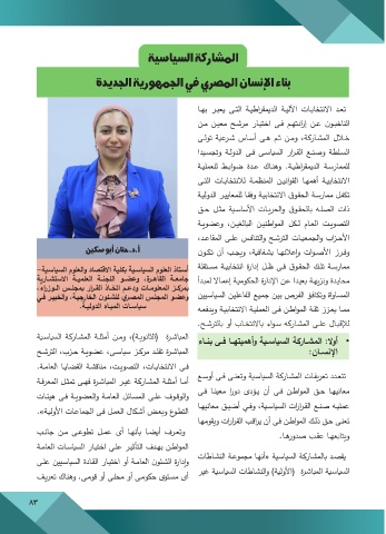 أ.د .حنان أبوسكين تعـد الانتخابـات الآليـة الديمق ارطيـة التـى يعبـر بهـا