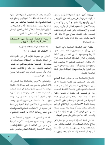 وسطيتها واعتدالها ،وتم حظر إنشاء الأح ازب السياسية كما تأتى أهمية المشاركة السياسية من أنها عملية لنقل