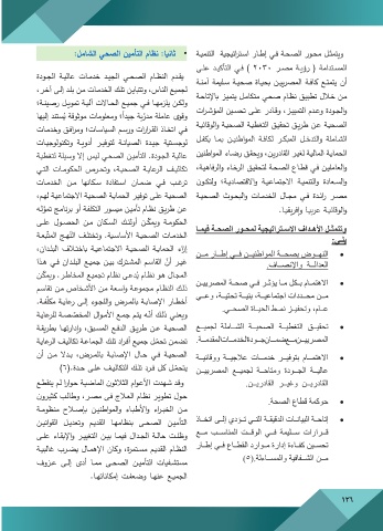 •ثانيا :نظام التأمين الصحي الشامل: ويتمثـل محـور الصحـة فـي إطـار اسـت ارتيجية التنميـة