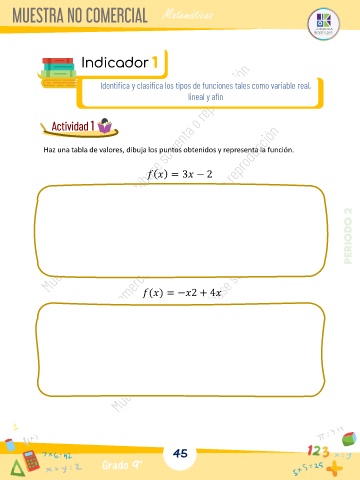 Haz una tabla de valores, dibuja los puntos obtenidos y representa la función.