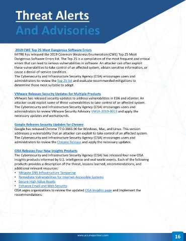 CISA urges organizations to review the updated CISA Insights page and implement the