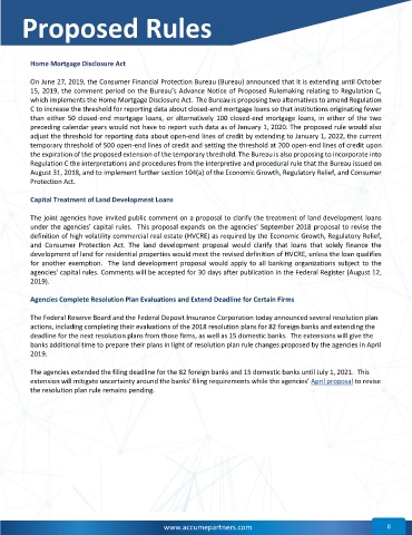 On June 27, 2019, the Consumer Financial Protection Bureau (Bureau) announced that it is extending until October