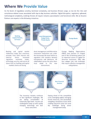 technological complexity, evolving threats all require industry specializa�on and func�onal skills. We at Accume