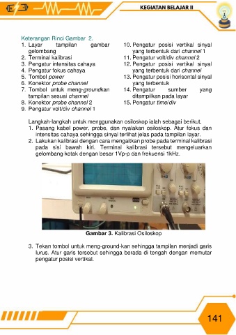 Langkah-langkah untuk menggunakan osiloskop ialah sebagai berikut.