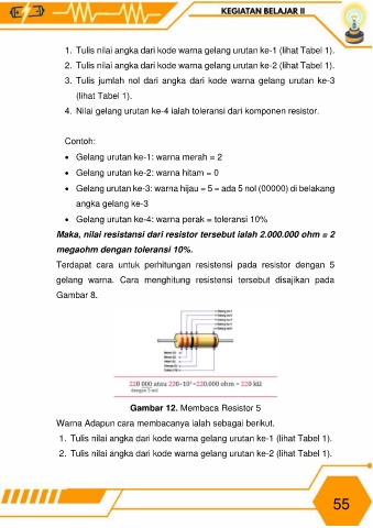 Maka, nilai resistansi dari resistor tersebut ialah 2.000.000 ohm = 2