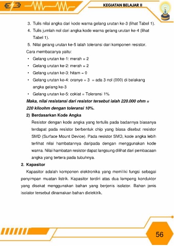 Maka, nilai resistansi dari resistor tersebut ialah 220.000 ohm =