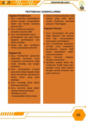 Kegiatan Pendahuluan 5. Siswa mempresentasikan hasil