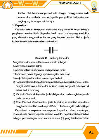penyimpan  muatan  listrik.  Kapasitor  terdiri  atas  dua  lempeng  konduktor