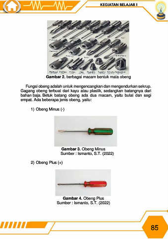 bahan baja. Betuk batang obeng ada dua macam, yaitu bulat dan segi