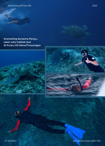 Snorkeling di Pulau Gili 2022 Snorkeling bersama Penyu, salah satu habitat laut di Pulau Gili Meno/Trawangan 27 Juli 2022 @Publikasi Humas BPK NTB
