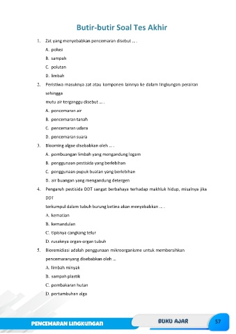1. Zat yang menyebabkan pencemaran disebut … .