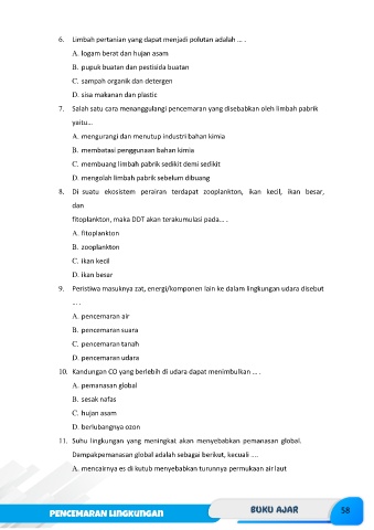 6. Limbah pertanian yang dapat menjadi polutan adalah … .
