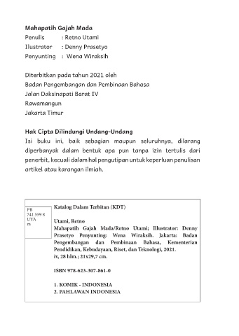 Mahapatih Gajah Mada/Retno Utami; Illustrator: Denny