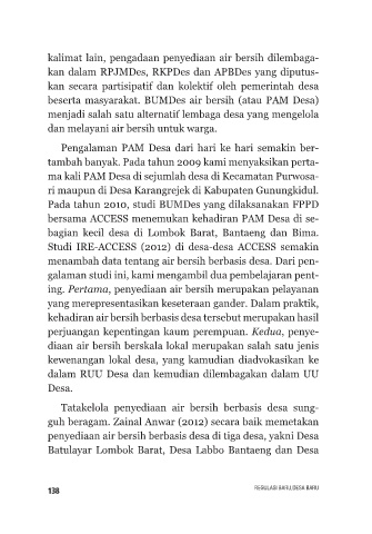 penyediaan air bersih berbasis desa di tiga desa, yakni Desa