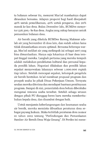 ga, Mas’ad melihat air yang melimpah ini sebagai aset yang