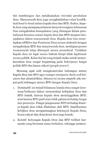 tual head to head antara kepala desa dan BPD. Kedua, kepa-