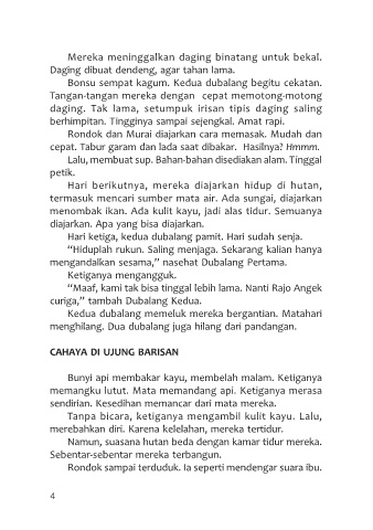 Tanpa bicara, ketiganya mengambil kulit kayu. Lalu,