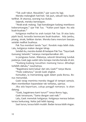 Ketiganya melihat ke arah tunjuk Pak Tua. Di atas batu
