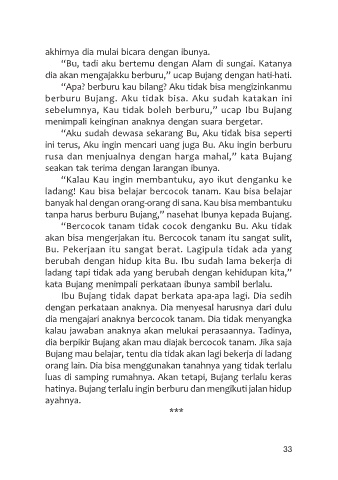 dia berpikir Bujang akan mau diajak bercocok tanam. Jika saja