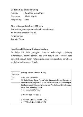 d Di Balik Kisah Rawa Pening/Jatu Kaannaha Putri; Ilustrator: