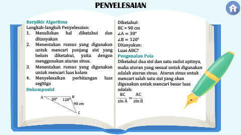 untuk mencari luas kolam adalah aturan sinus. Aturan sinus untuk