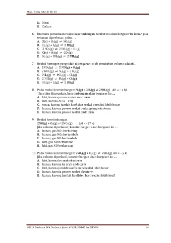 6. Diantara persamaan reaksi kesetimbangan berikut ini akan bergeser ke kanan jika
