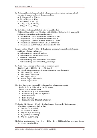6. Dari reaksi kesetimbangan berikut, bila volume sistem diubah, maka yang tidak