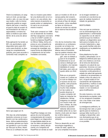 Otro tipo de enfermedades bastante comunes en la po- blación son las cardiovascu- lares, dichos padecimientos se pueden generar por facto- res genéticos o por el estilo de vida que se lleva, Heart- Flow es un software de aná-