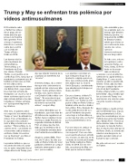 ocasiones con el alcalde mu- sulmán de la capital británica, Sadiq Khan. Y como era de esperar, el edil no quedó indi- ferente. “Está cada vez más claro que cualquier tipo de vi- sita oficial del Presidente Trump a Reino Unido no sería bienvenida”, dijo y añadió que las acciones de Trump “son una traición a la relación espe- cial entre nuestros dos paí- ses”.