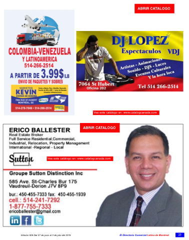 ABRIR CATALOGO Actualidad Vea este catálogo en: www.catalogcanada.com Vea este catálogo en: www.catalogcanada.com ABRIR CATALOGO Edición 829 Del 27 de junio al 3 de julio del 2019 El Directorio Comercial Latino de Montreal 23