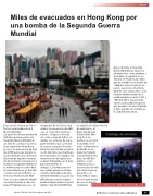 dense durante la Segunda Guerra Mundial.La aparición de explosivos como bombas o granadas sin explotar no es extraña en Hong Kong, dado que la ciudad fue escenario de combates entre el ejército ja- ponés, que tomó el territorio durante casi cuatro años, y las fuerzas aliadas británicas y estadounidenses entre 1941 y 1945.En 2014, la policía de- sactivó una bomba de guerra que pesaba casi una tonelada, la más grande encontrada en la ciudad hasta ahora.