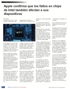 La confirmación de Apple llega después de que Intel, la com- pañía en el centro de la polé- mica, asegurara que este problema de seguridad involu- cra a varios suministradores y no sólo a ellos.