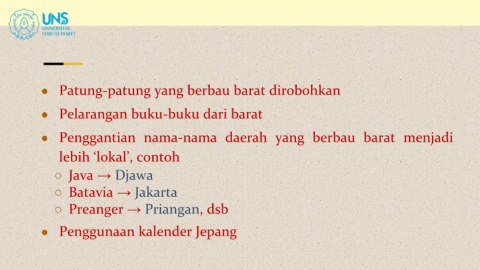 ● Penggantian nama-nama daerah yang berbau barat menjadi