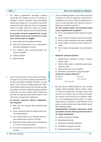 TEST - 1 Dini Yorum Farklılıklarının Sebepleri