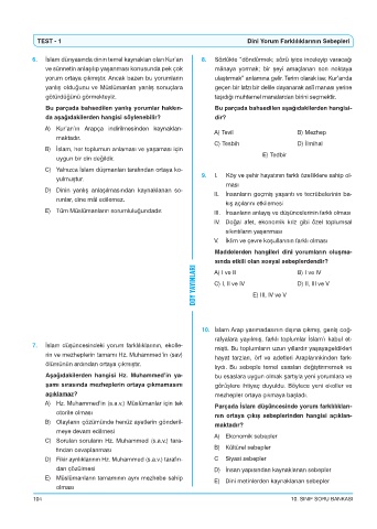 TEST - 1 Dini Yorum Farklılıklarının Sebepleri