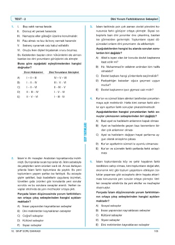TEST - 2 Dini Yorum Farklılıklarının Sebepleri