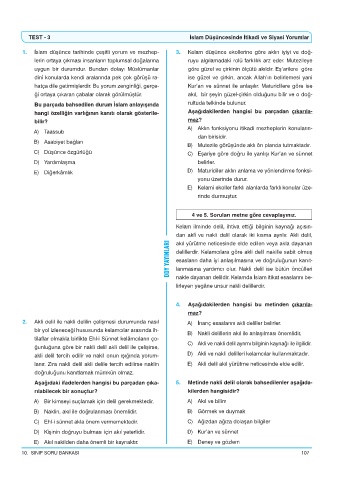TEST - 3 İslam Düşüncesinde İtikadi ve Siyasi Yorumlar