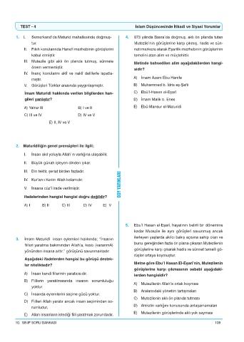 TEST - 4 İslam Düşüncesinde İtikadi ve Siyasi Yorumlar